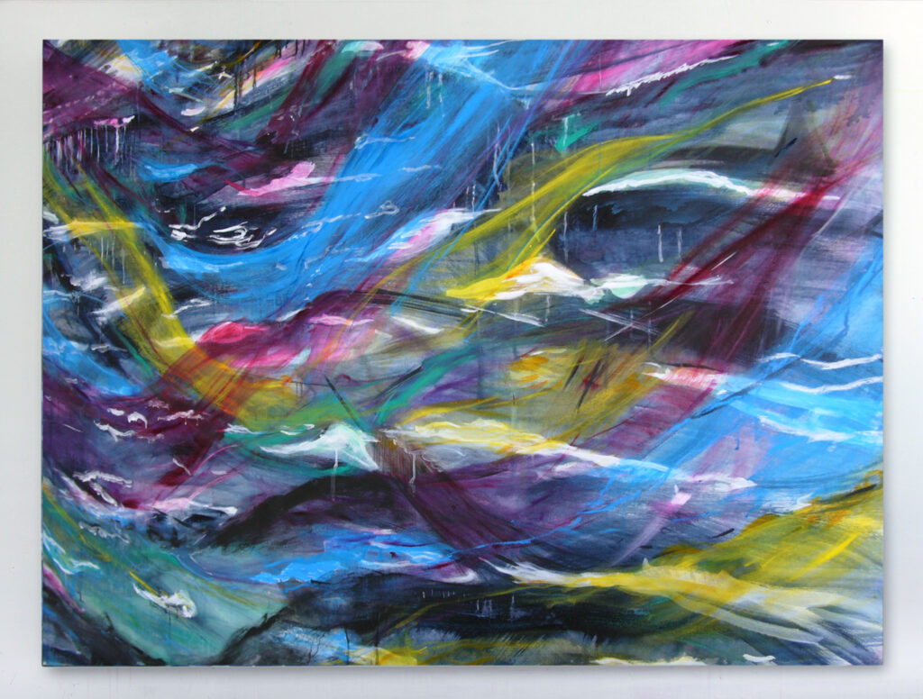 Für diese Ausstellung hat sie neue Gemälde gemalt, die für sie eine neue Herausforderung darstellten, die sich in einer Frage besser formulieren lässt: Wie bringt man die kraftvolle Dynamik ihres Pinselstrichs und ihrer Farbwelten in kleineren bis mittleren Formaten unter? …